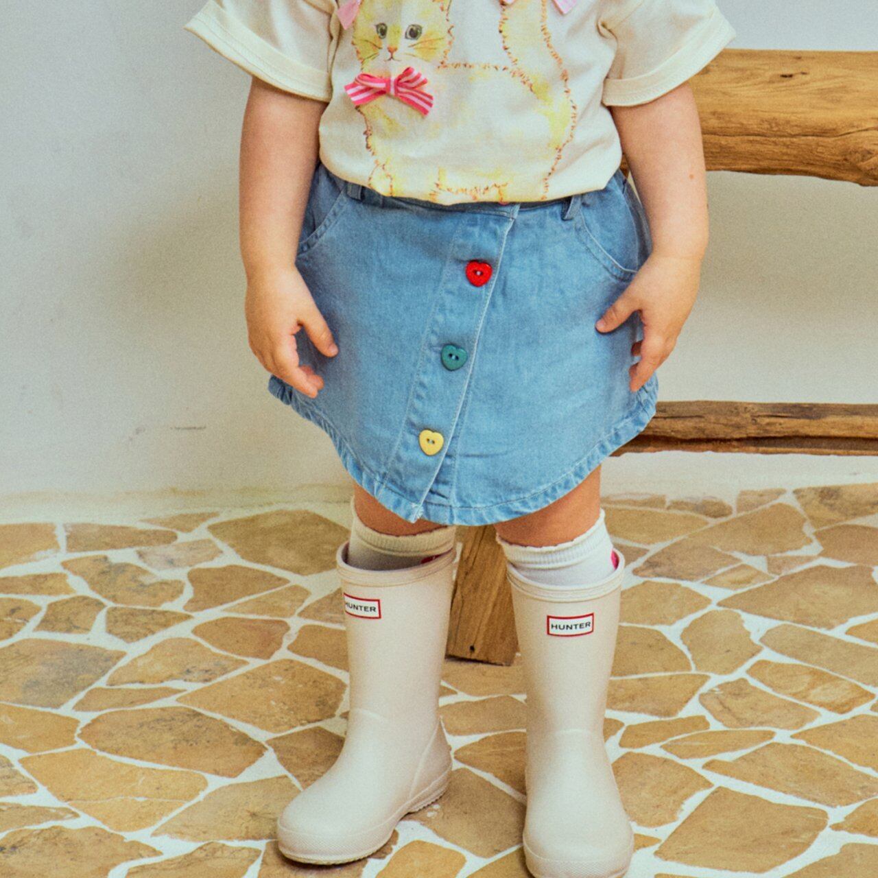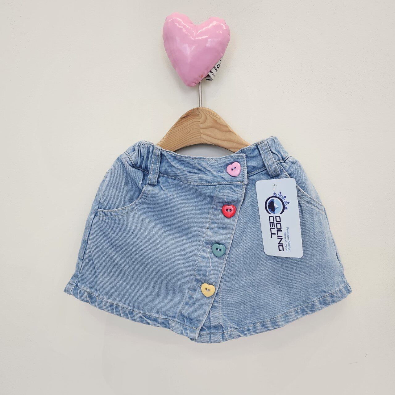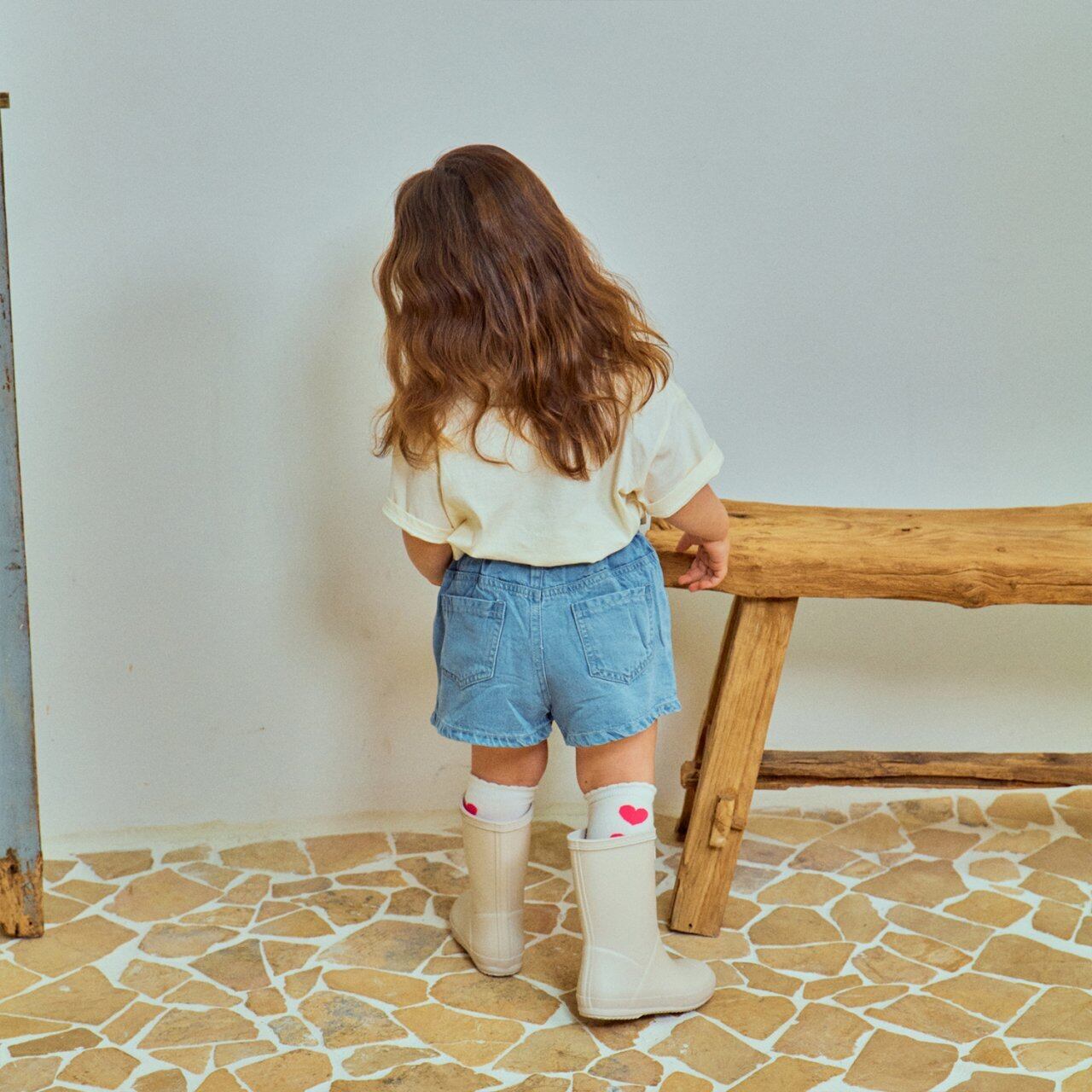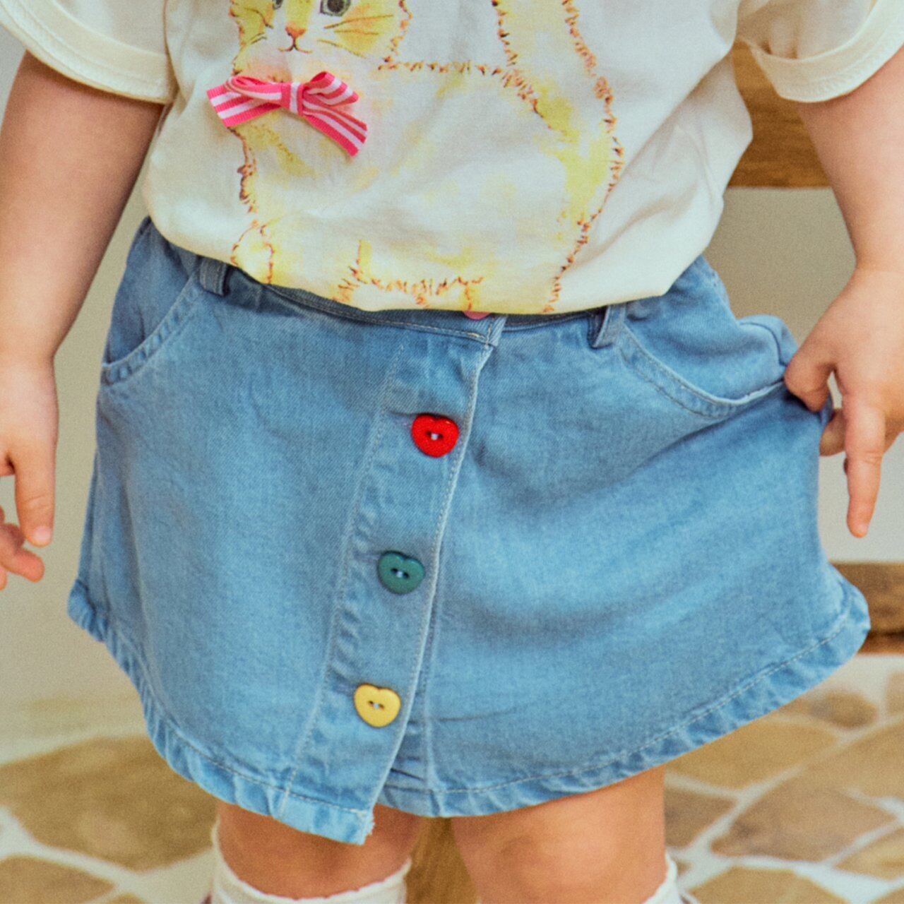 【即納】(100-120) 1stblue / heart denim skirtpants